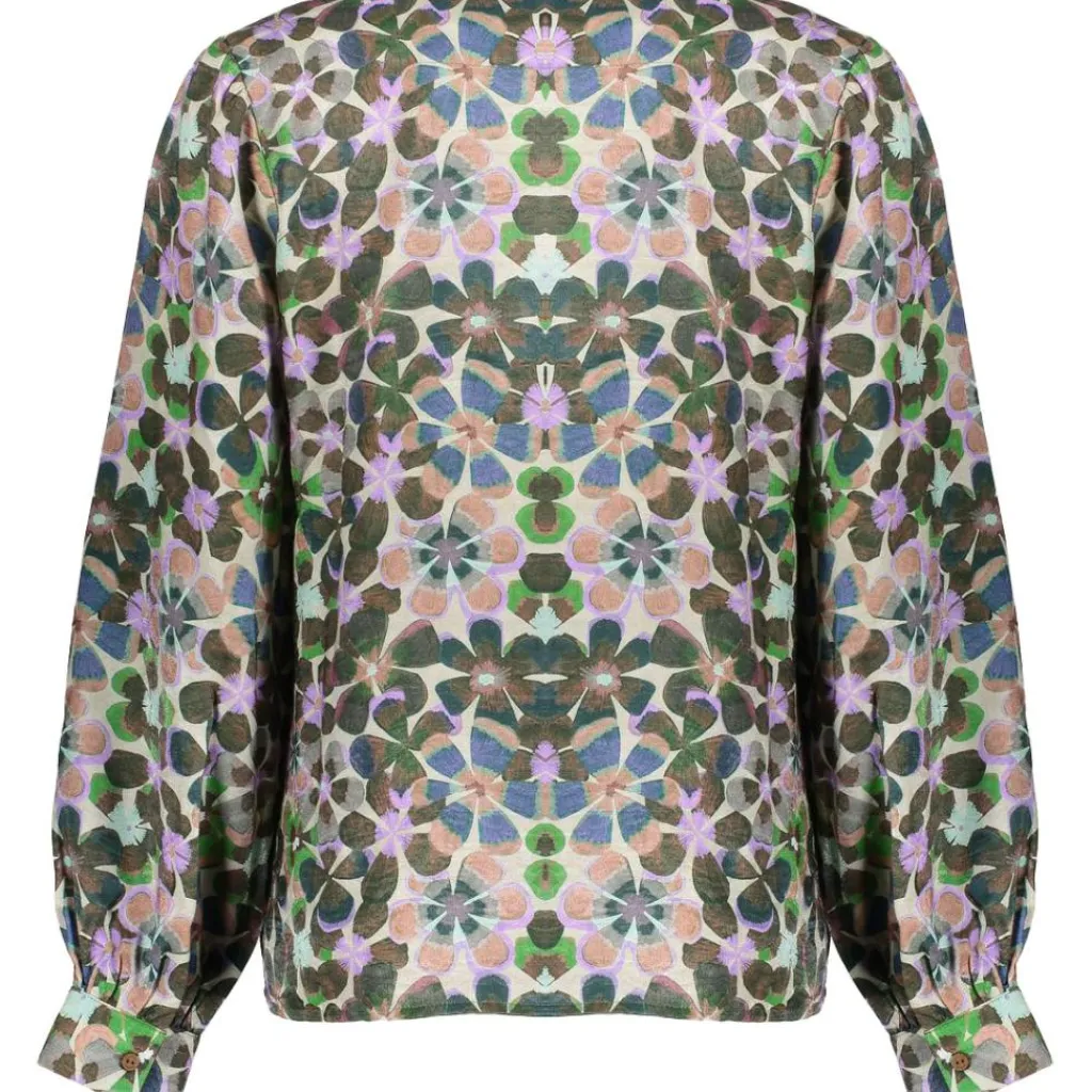 De Geisha blouse heeft een V-hals, ballonmouwen en een sierlijke print, waardoor dit item een unieke en stijlvolle toevoeging is voor uw outfit.