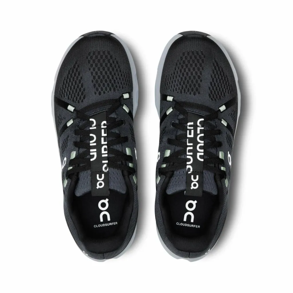 De On Cloudsurfer hardloopschoenen voor dames bieden merkbaar zachte demping. Deze geavanceerde hardloopschoenen zijn ontworpen met uitsluitend de essentiële componenten, wat resulteert in topprestaties en een lichter gewicht. Gemaakt van 30% gerecyclede materialen en geverfd met waterbesparende dope dye-technologie, dragen deze schoenen bij aan een duurzamere toekomst. Bovendien zorgen de rubberen pads voor goede tractie in zowel natte als droge omstandigheden.
