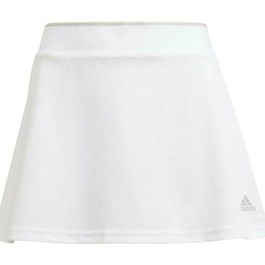 Het adidas Club tennisrokje junior white grey two heeft AEROREADY technologie waardoor u fris en droog blijft. Dit product is gemaakt van 100% gerecycled polyester. Het adidas logo staat op de hoek onderaan de rok bedrukt.