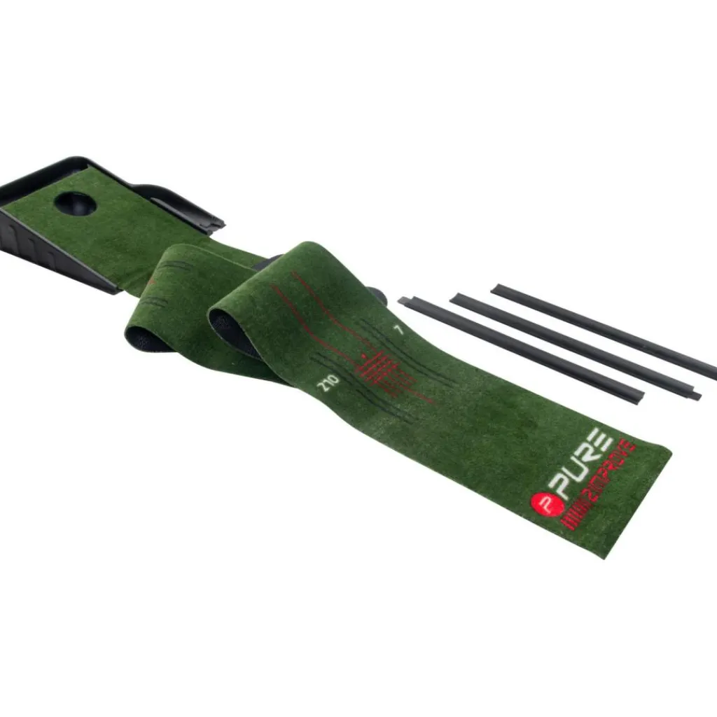 Met deze Confidence putting mat van Pure kunt u uw golfprestaties op het gebied van putten verbeteren vanaf verschillende afstanden. Wanneer de bal in de put zit, komt hij via de gleuf aan de zijkant weer terug, zodat u snel uw volgende slag kunt slaan.
