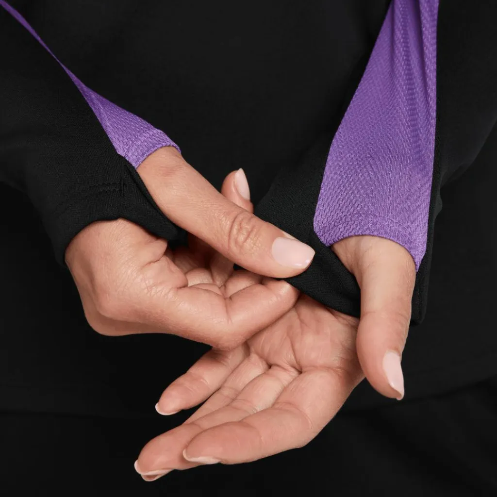 Het Nike Dri-FIT Academy trainingsshirt voor dames is ventilerend, sneldrogend en zweetafvoerend. Dit voetbalshirt van Nike is dus perfect om te dragen tijdens een voetbaltraining. Vooral op koudere dagen is dit shirt heel fijn, vanwege de langere mouwen met duimgaten en hogere hals met rits.