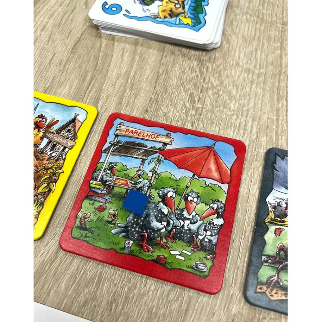 Graantje de Voorste van 999 Games is een vlot blufspel waarin kippen, ganzen en ander pluimvee op het juiste moment naar de voederbak moeten gaan om een graantje mee te pikken. Maar let op voor de vossen, die liever op het pluimvee jagen! Spelers spelen elke ronde tegelijkertijd een gedekte kaart, wat leidt tot spannende momenten vol bluf en onverwachte wendingen. Wie kan het gedrag van de anderen het beste inschatten en slaagt erin voedsel te verzamelen zonder in gevecht te raken? Ideaal voor liefhebbers van strategie en bluf.