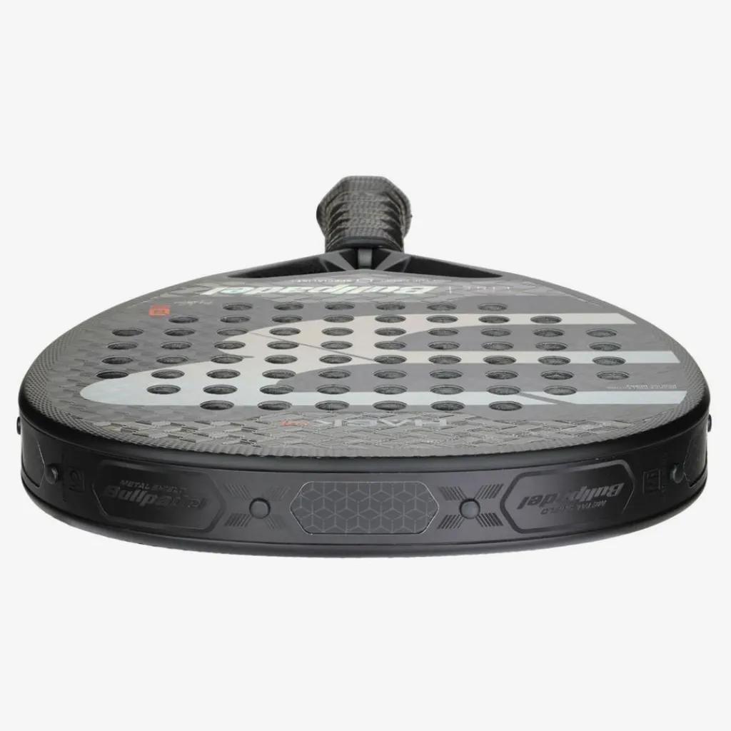 Het Bullpadel Hack 03 24 padel racket is zeer geschikt voor ervaren en professionele spelers. Dit Bullpadel padel racket zorgt voor maximale power in uw slagen, zonder dat u de controle verliest. Het geïntegreerde Air React Channel systeem geeft dit racket een aerodynamisch frame. Het grove 3D Grain oppervlak zorgt voor meer impact in uw slagen, terwijl het Vibradrive systeem en de Hesacore grip vibraties goed opvangen.