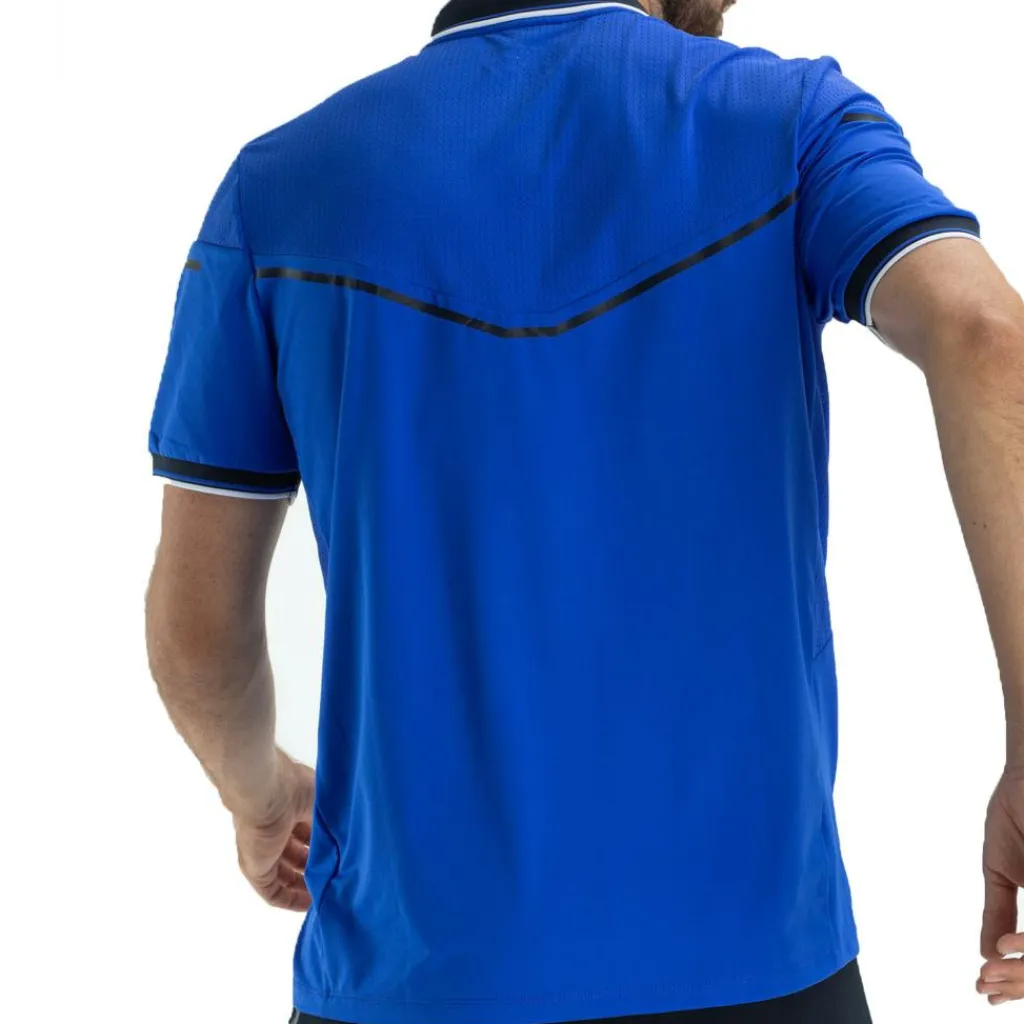 De Sjeng Sports Hyde tennispolo voor heren heeft een hoog draagcomfort en beweegt soepel mee tijdens het sporten. Dat komt doordat deze blauwe tennispolo van Sjeng Sports gemaakt is van een ademend en flexibel materiaal.