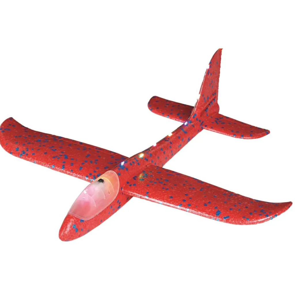 Het Moses. Verlag Lichtgevende zweefvliegtuig van 47 cm heeft lampjes die kunnen knipperen of constant branden. U kunt dit vliegtuig laten zweven of loopings laten maken. Het zweefvliegtuig komt inclusief batterijen en is verkrijgbaar in drie kleurvariaties.