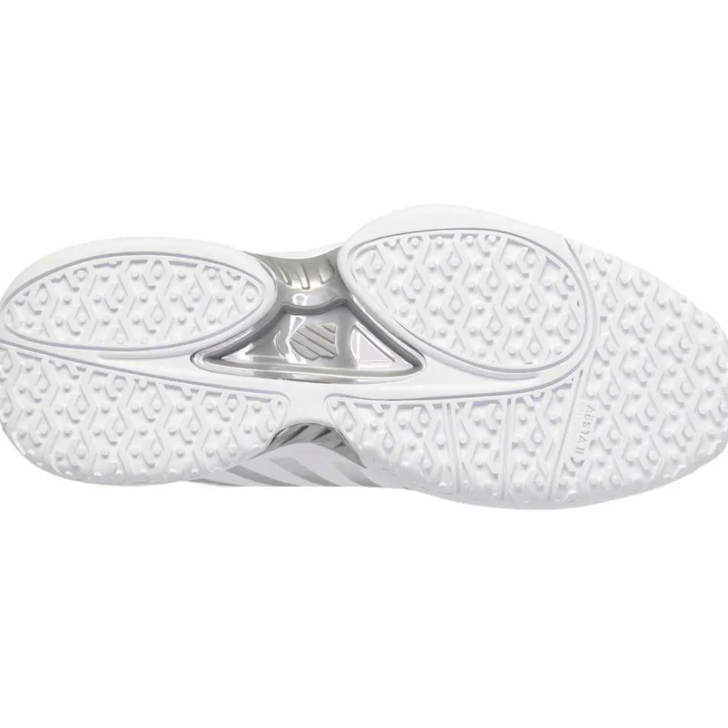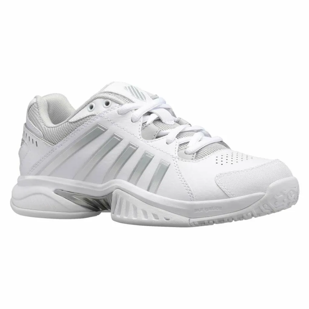 De K-Swiss Receiver V Omni tennisschoenen voor dames hebben een minimalistische look. De dempende zool in combinatie met de ademende upper zorgt voor een comfortabel draaggevoel. Deze schoenen zijn speciaal ontworpen om uw spel naar een hoger niveau te brengen.