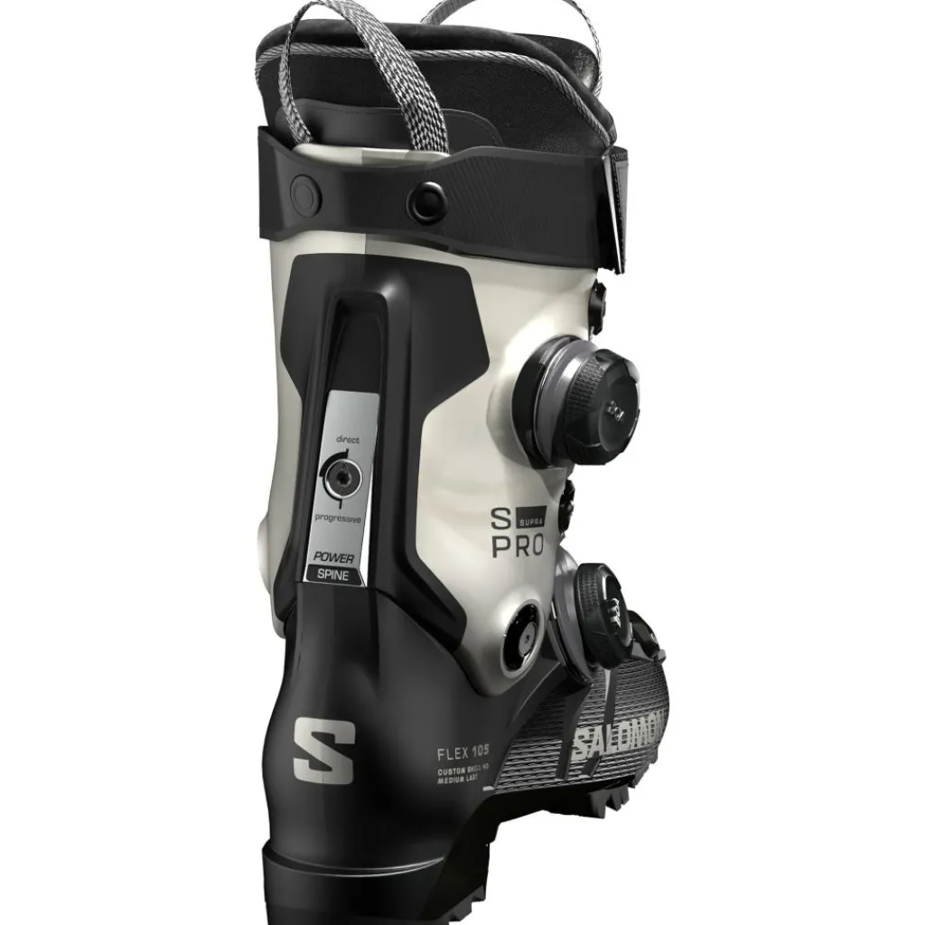 Met deze Salomon S/Pro Supra Dual BOA 105 skischoenen ervaart u een soepele ski-ervaring met veel demping, stevigheid en wendbaarheid. De skischoenen hebben twee praktische BOA-draaiknoppen, waarmee u een perfecte pasvorm kunt creëren. Daarnaast zorgt de schacht voor meer ondersteuning, zodat de schoenen goed en comfortabel zitten. De binnenvoering heeft een uitneembare tong en biedt voetondersteuning, wat voor meer nauwkeurigheid in het sturen zorgt.