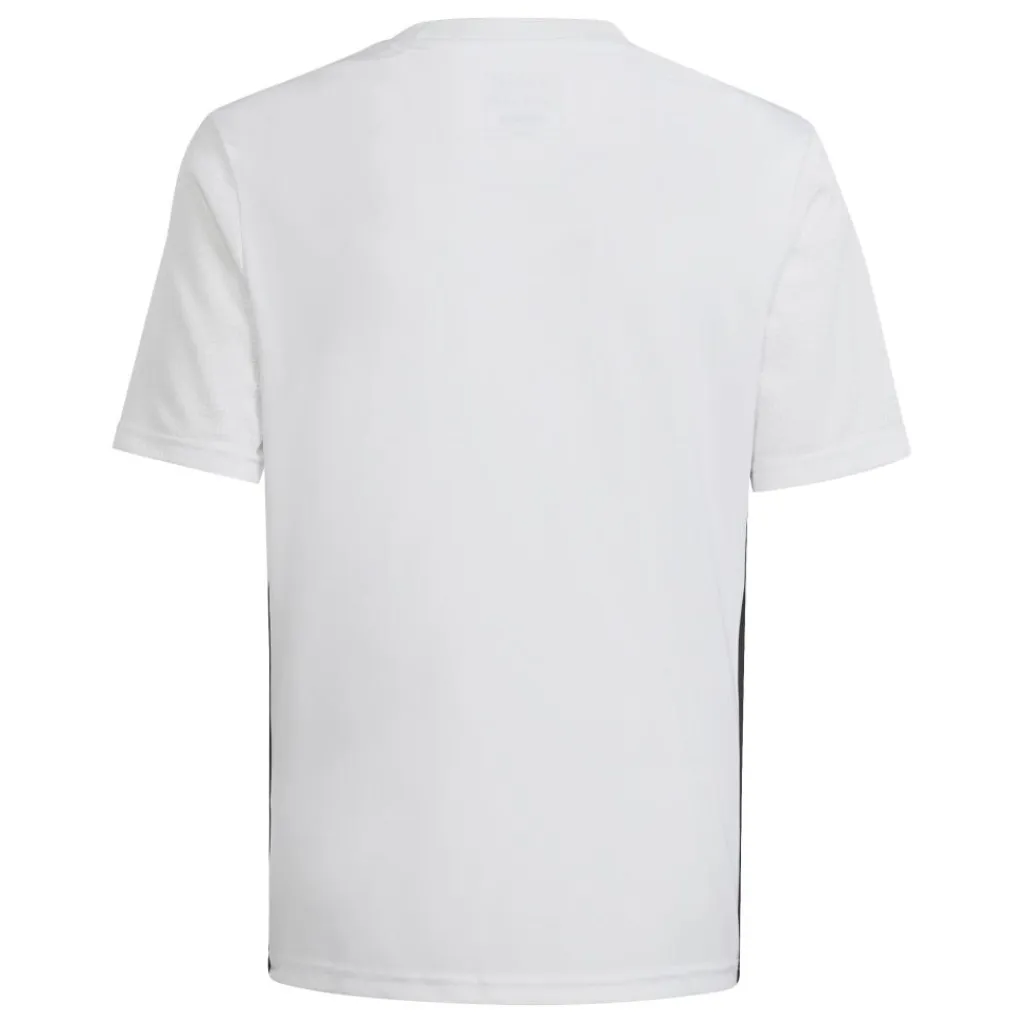 Het adidas Tabela voetbalshirt voor kinderen biedt voldoende bewegingsvrijheid dankzij het comfortabele materiaal en de normale pasvorm. Dit shirt is voorzien van kenmerkende adidas-accenten en is uitgerust met vochtabsorberende AEROREADY-technologie. Daarnaast hebben de korte mouwen een sneldrogende meshstructuur.
