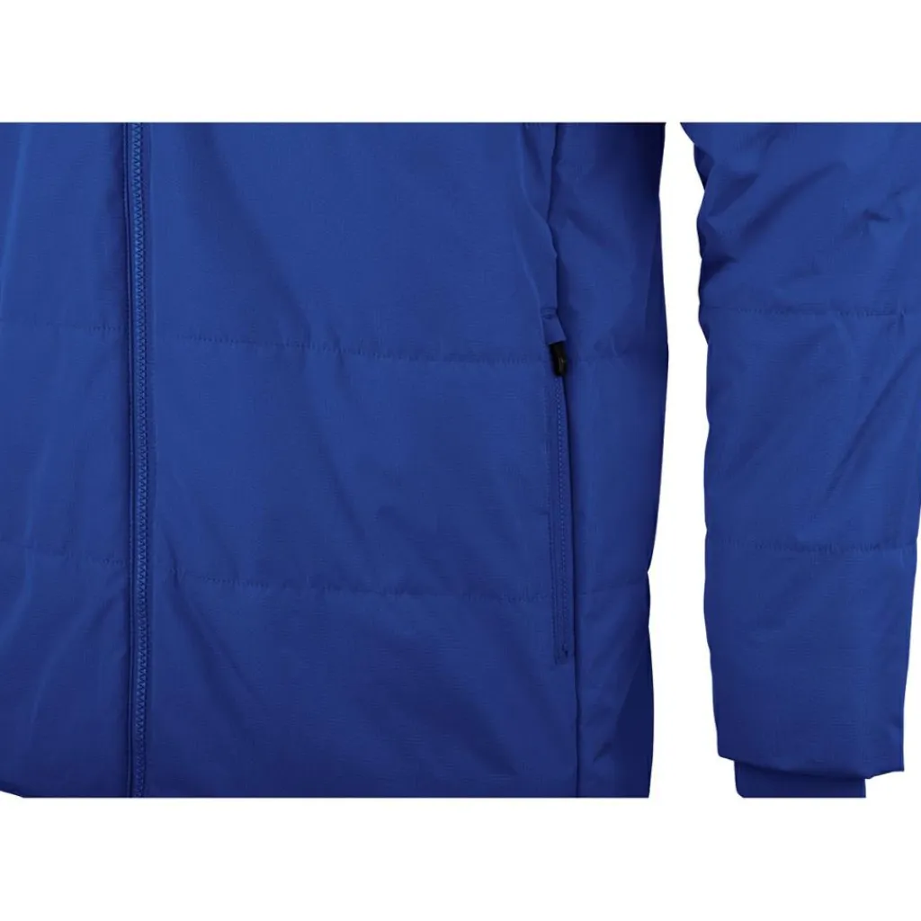 De Team Coachjas is ideaal om te dragen langs de lijn wanneer de temperaturen dalen. Het bovenmateriaal is waterafstotend.De thermische wattering en zachte fleece aan de binnenzijde biedt deze jas perfecte bescherming tegen de kou. Geïntegreerde Ripp-boorden in de mouwen, samen met het tunnelkoord en de stoppers aan de capuchon, voorkomen dat wind en regen binnendringen.