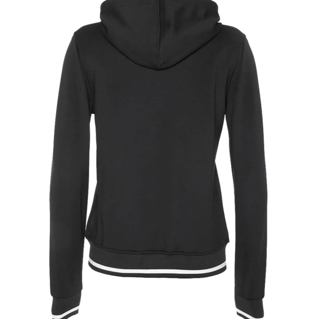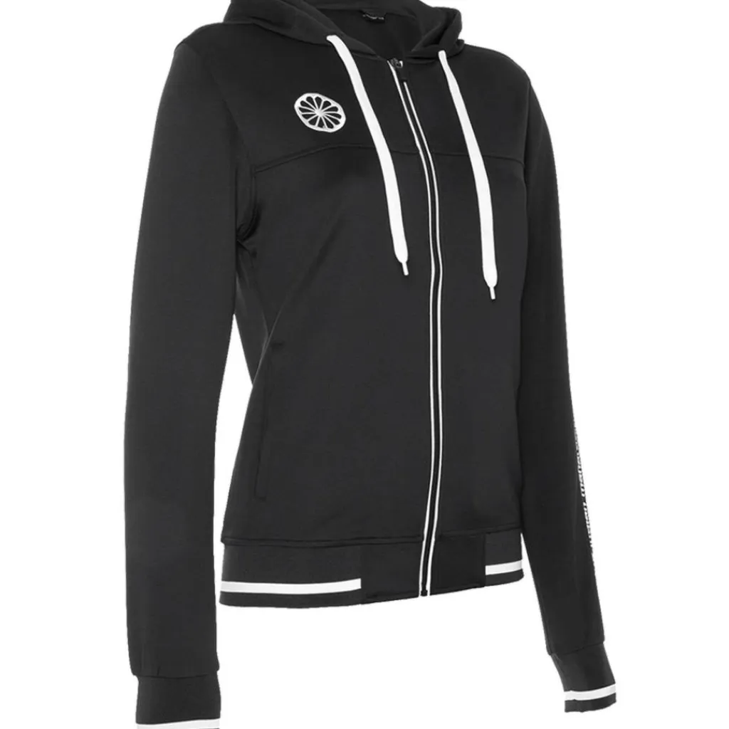 Het The Indian Maharadja Tech Hooded trainingsjack dames black is een fijn hockeyvest met een vaste capuchon. Het The Indian Maharadja trainingsjack heeft naast deze capuchon een volledige rits aan de voorkant. Zowel de mouwen als de onderkant van het vest zijn voorzien van elastische boorden.