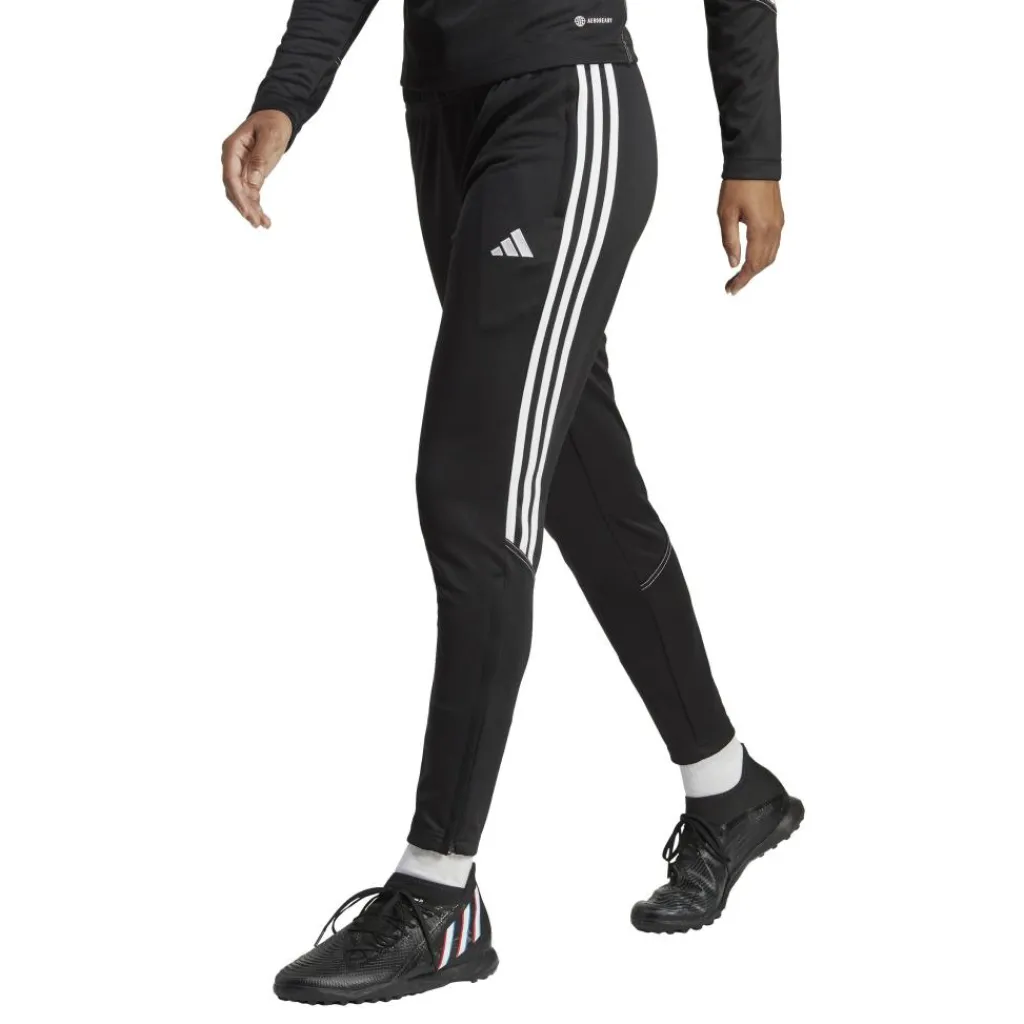 De adidas Tiro 23 Club trainingsbroek voor dames heeft enkelritsen, zodat u de broek eventueel over uw schoenen aan en uit kunt trekken. De broek heeft handige zakken met rits voor uw persoonlijke spullen. De broek is gemaakt met AEROREADY-technologie wat ervoor zorgt dat de broek snel droogt. Met de elastische tailleband met trekkoord blijft de broek goed zitten en sluit deze goed aan op uw lichaam.