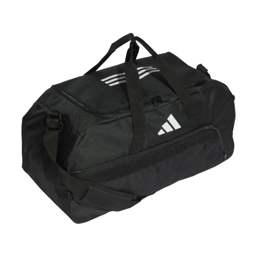 De adidas Tiro League sporttas kan tot 39,5 liter gevuld worden met spullen. Deze handige tas is perfect om uw voetbalkleding en schoenen in mee te nemen. Er is een zijvak van mesh aanwezig en het schoenenvak is ventilerend. De tas is van 100% gerecycled polyester gemaakt en heeft een verstelbare schouderriem met kussentje. De afmeting van de tas is 60 x 29 x 29 centimeter.