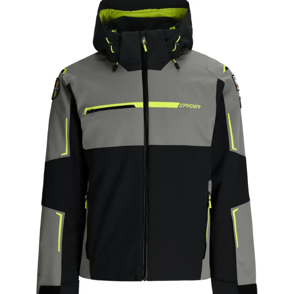 De Spyder Titan winterjas heeft getapete naden en een volledig waterdichte buitenlaag, waardoor hij optimale bescherming biedt tegen de weersinvloeden. De capuchon kan over een helm gedragen worden, maar kan ook afgenomen worden, zodat u de fitting kunt aanpassen naar de weersomstandigheden. De afneembare sneeuwvanger zorgt ervoor dat er geen koude sneeuw binnen de jas kan dringen en dankzij de skipashouder heeft u uw skipas altijd binnen handbereik.