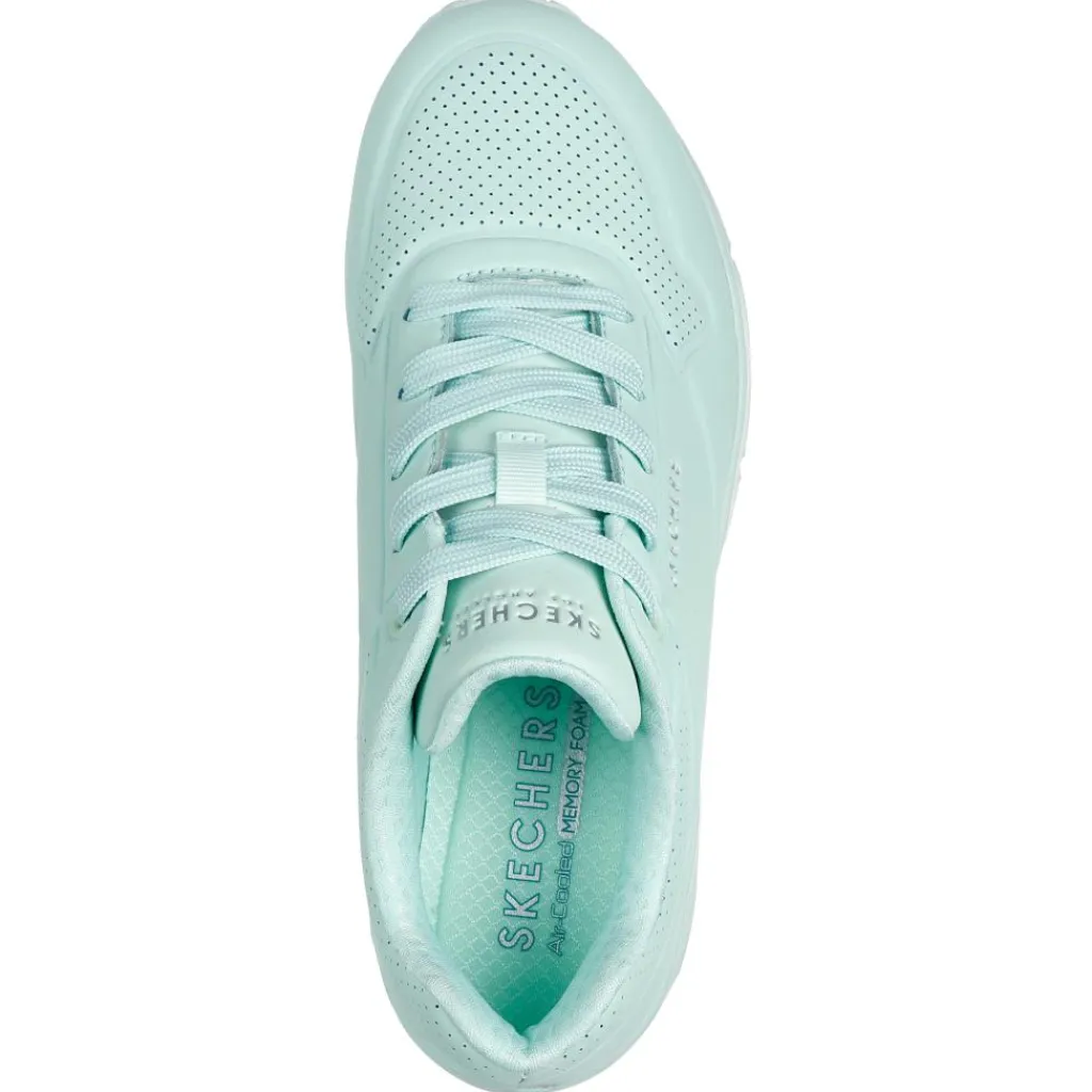 De Skechers Uno – Stand On Air schoenen voor dames zijn stijlvolle en comfortabele sneakers met veel demping. Het lichte bovenwerk is gecombineerd met een Air Cooled Memory Foam binnenzool en een Skech-Air tussenzool voor extra demping.