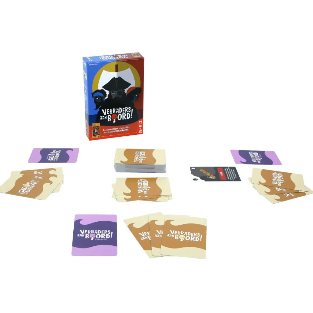 Het 999 Games Verraders aan Boord! kaartspel is een spannende party game, vol met deductie en samenwerking. In dit spel zijn er twee rollen te vervullen, piraat en muiter. Iedere speler krijgt in het geheim te horen of hij een piraat of een muiter is. Vervolgens is het de taak aan de piraten om zoveel mogelijk geld in de schatkist te krijgen, terwijl de muiters de boel proberen te belazeren. Ga de strijd aan in groepen tot maar liefst acht personen en breng de spanning van het piratenleven naar uw tafel!