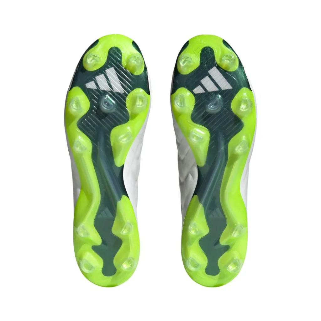 De adidas Copa Pure.1 FG voetbalschoenen voor heren hebben een iconische look die goed opvalt. Deze schoenen bieden een fijne pasvorm en zitten de hele wedstrijd comfortabel. Met de gespecialiseerde buitenzool heeft u perfect grip op droog gras. Hierdoor kunt u zich goed afzetten voor een sprint. Deze schoenen zijn voor minstens 50% gemaakt van gerecycled materiaal.