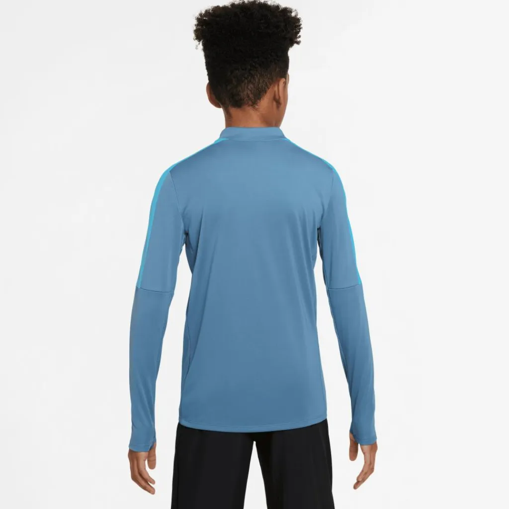 Het Nike Dri-FIT Academy23 trainingsshirt houdt uw kind warm op het veld tijdens koudere dagen. Dit trainingsshirt van Nike heeft een ritssluiting bij de nek, zodat uw kind naar wens meer warmte of koelte kan toelaten. Het materiaal is Dri-FIT, dus vochtafvoerend en sneldrogend. Daarnaast heeft dit elastische shirt duimgaten.