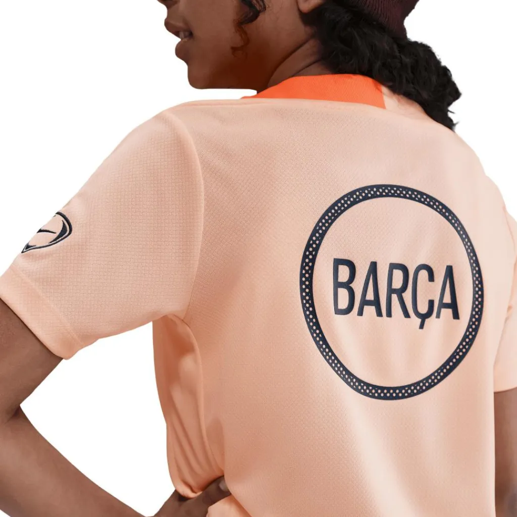 Het Nike FC Barcelona Strike derde shirt zorgt ervoor dat kinderen zich fris en zelfverzekerd voelen, dankzij de materialen die transpiratievocht afvoeren en snel drogen.
