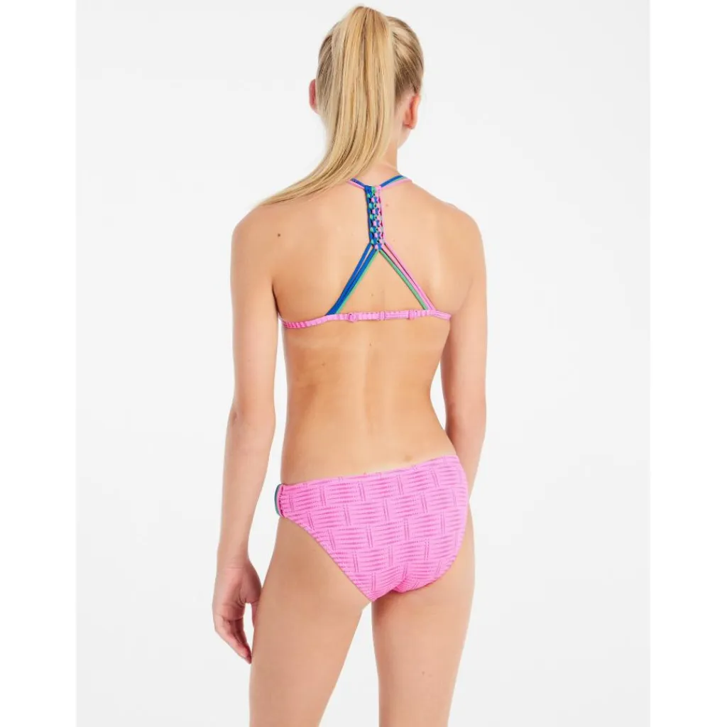 Het strepen design, de vrolijke kleur en unieke achterkant geeft deze Protest Fimke bikini een speels design die de zomer uitstraalt. De bandjes zijn te verstellen om een fijne pasvorm te kunnen maken.