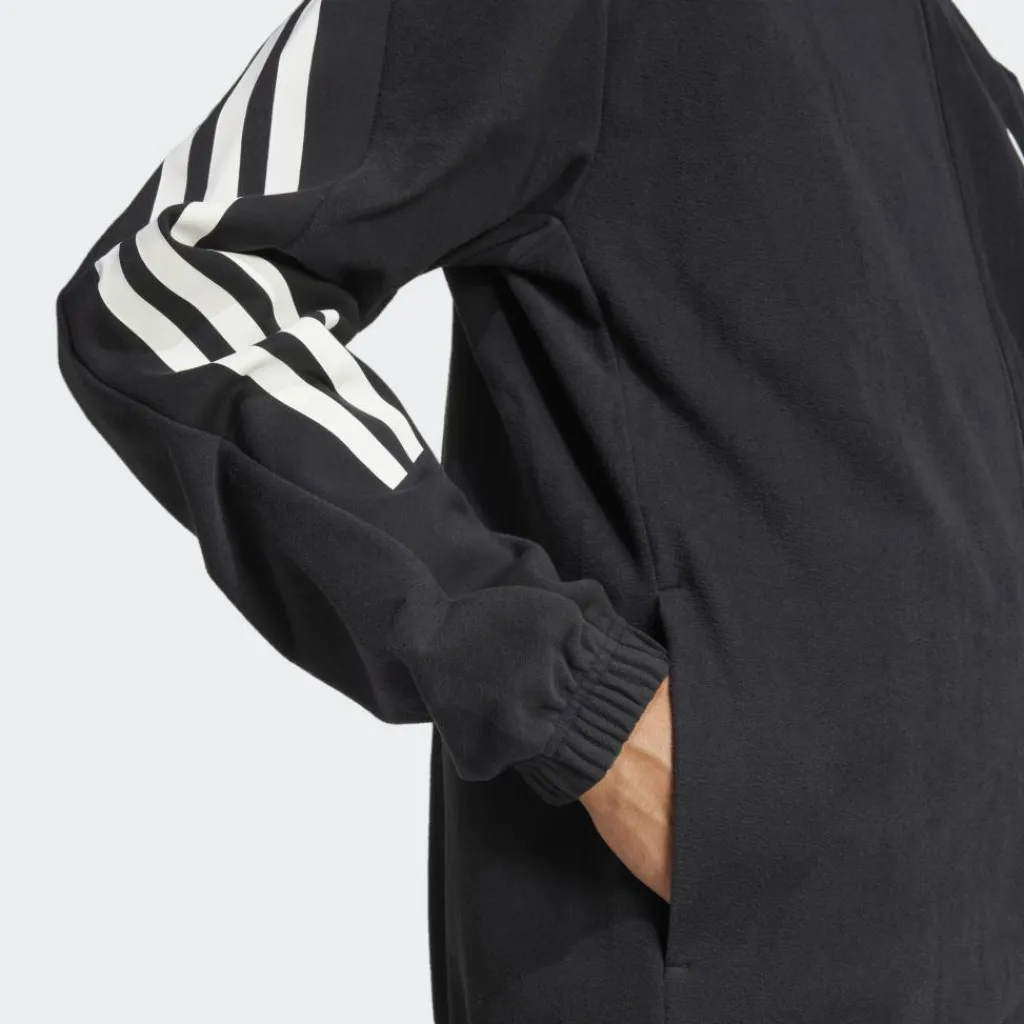 Door het opvallende 3-strepen design krijgt dit Future Icons 3-Stripes Polar fleece trainingjack van adidas een sportieve look. Het trainingsjack is grotendeels gemaakt van gerecycled materiaal die warmte goed vasthoudt.