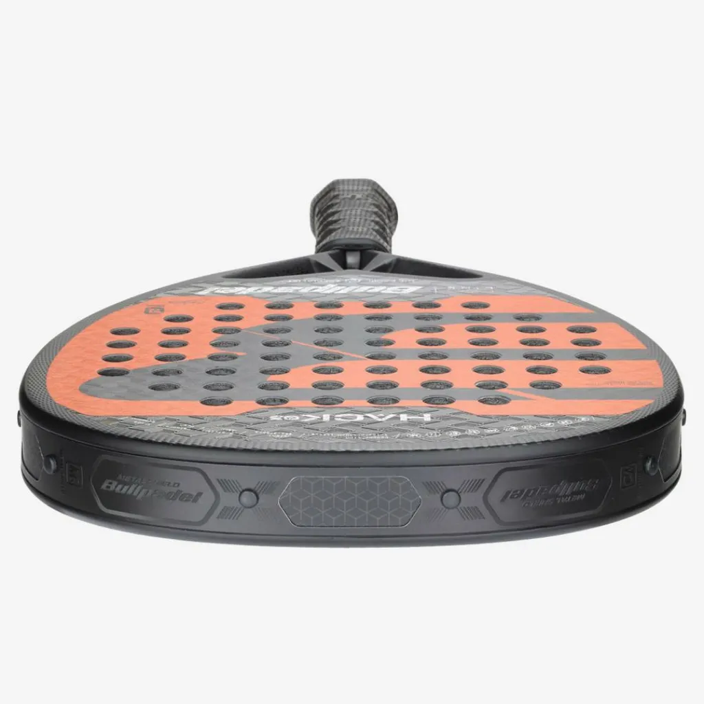 Het Bullpadel Hack 03 24 padel racket is zeer geschikt voor ervaren en professionele spelers. Dit Bullpadel padel racket zorgt voor maximale power in uw slagen, zonder dat u de controle verliest. Het geïntegreerde Air React Channel systeem geeft dit racket een aerodynamisch frame. Het grove 3D Grain oppervlak zorgt voor meer impact in uw slagen, terwijl het Vibradrive systeem en de Hesacore grip vibraties goed opvangen.