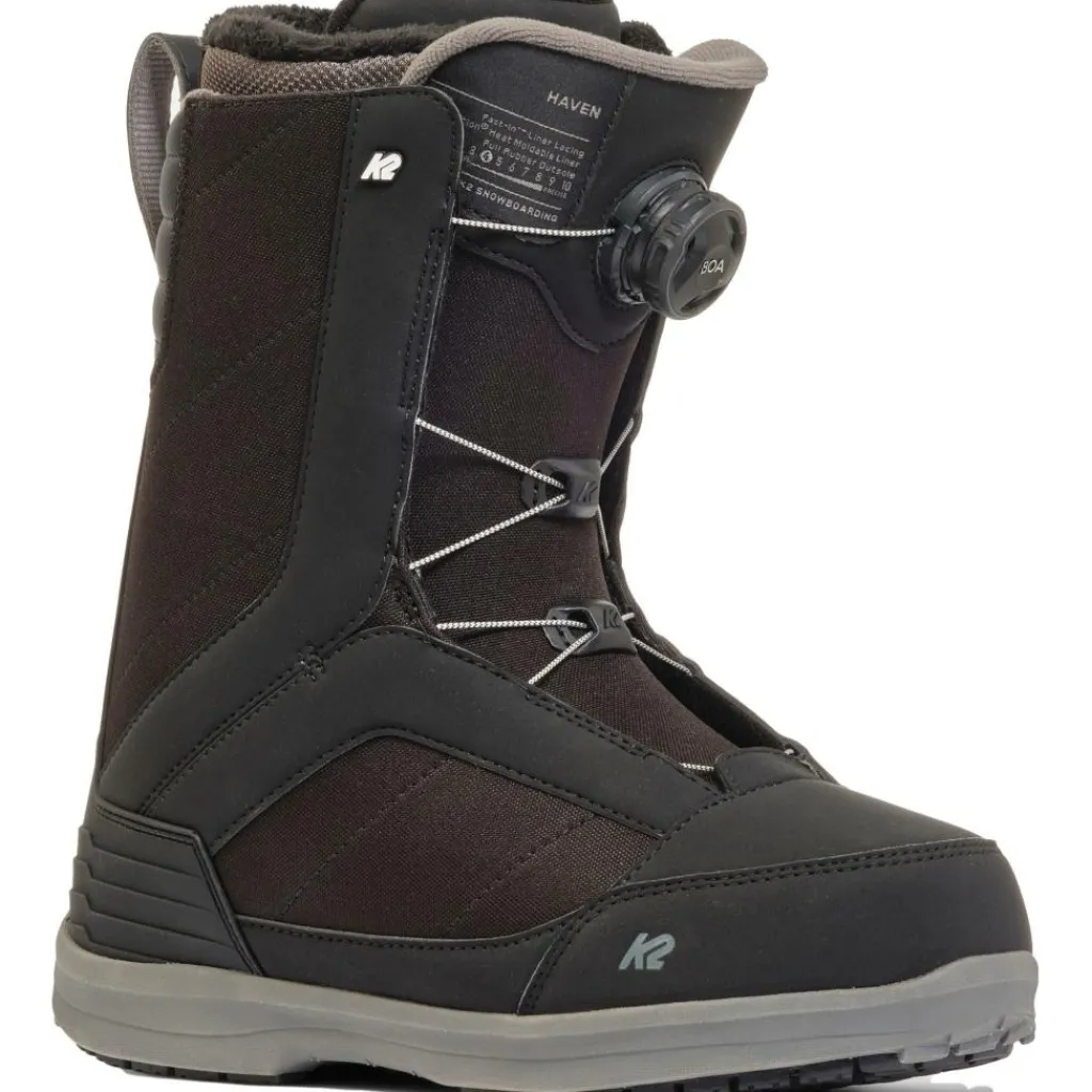 De K2 Haven snowboardschoenen voor dames zijn makkelijk aan en uit te doen met de BOA sluiting, die met één hand te bedienen is. Daarnaast hebben deze K2 snowboardschoenen een RollSole rubberen buitenzool die ideaal is om nieuwe terreinen mee te ontdekken. De Harshmellow binnenzool dient als een extra kussen om vibraties op te vangen en de Intuition Comfort Foam 3D voering vormt zich door middel van warmte naar uw voeten.