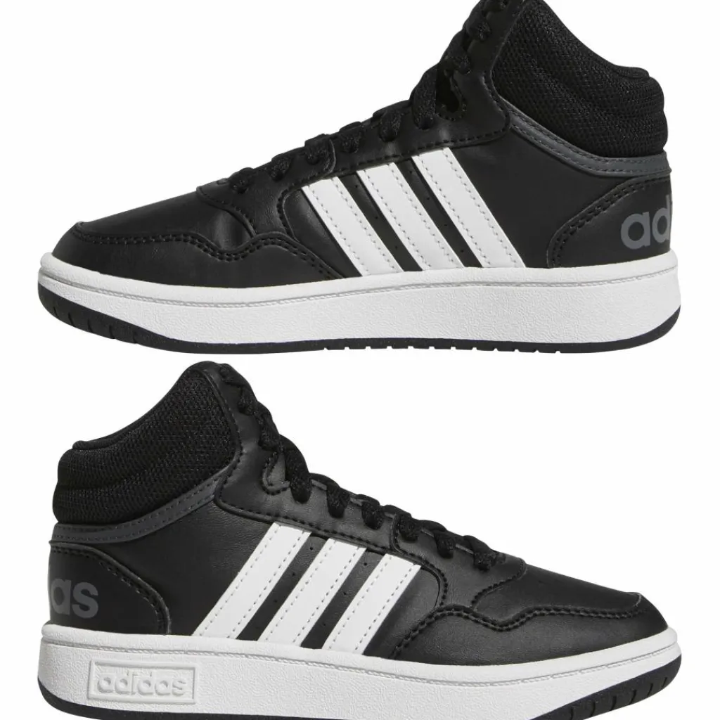 De adidas Hoops Mid 3.0 GW0402 schoenen voor kinderen hebben een bovenwerk gemaakt van synthetisch leer. Hierdoor hebben de schoenen een luxe uitstraling en zijn ze licht van gewicht om makkelijk te bewegen. Deze schoenen bieden een hoge stabiliteit en ondersteuning.
