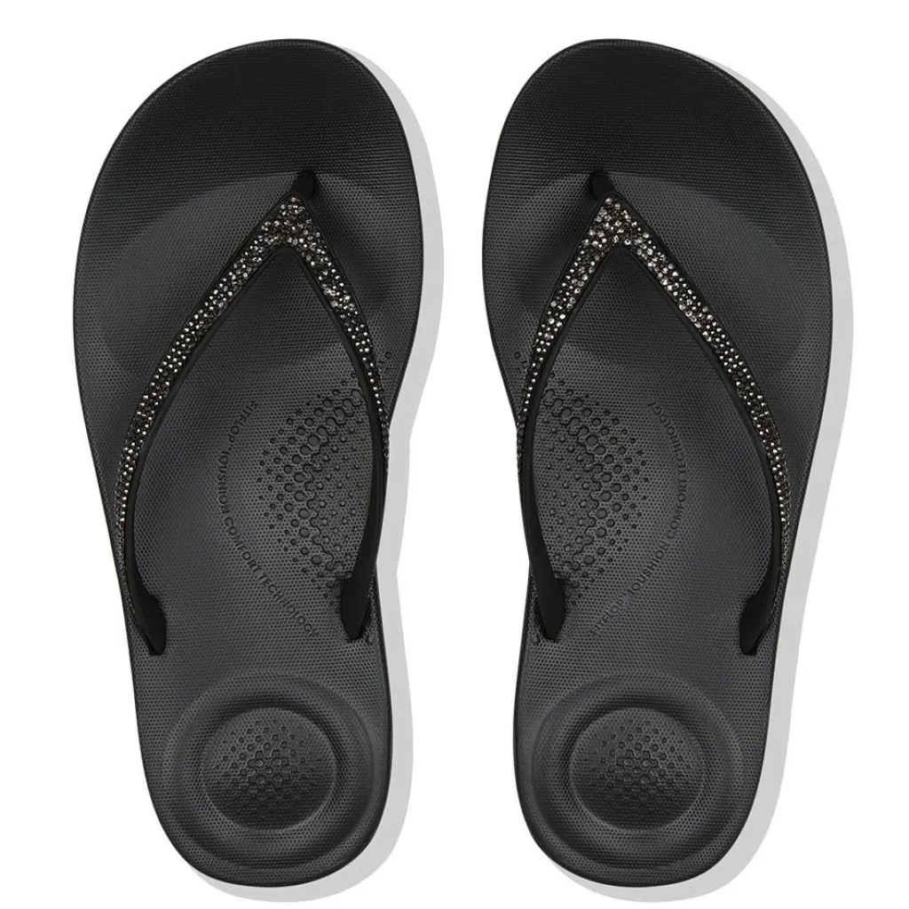 Haal wat glitter en glamour in huis met deze FitFlop iQushion Sparkle slippers voor dames. Deze sprankelende slippers combineren stijl en comfort, waardoor elke stap moeiteloos aanvoelt. Dankzij de geavanceerde iQushion™-technologie bieden ze ongeëvenaard comfort en ondersteuning en de subtiele glinsterende details voegen een vleugje elegantie toe aan elke outfit!