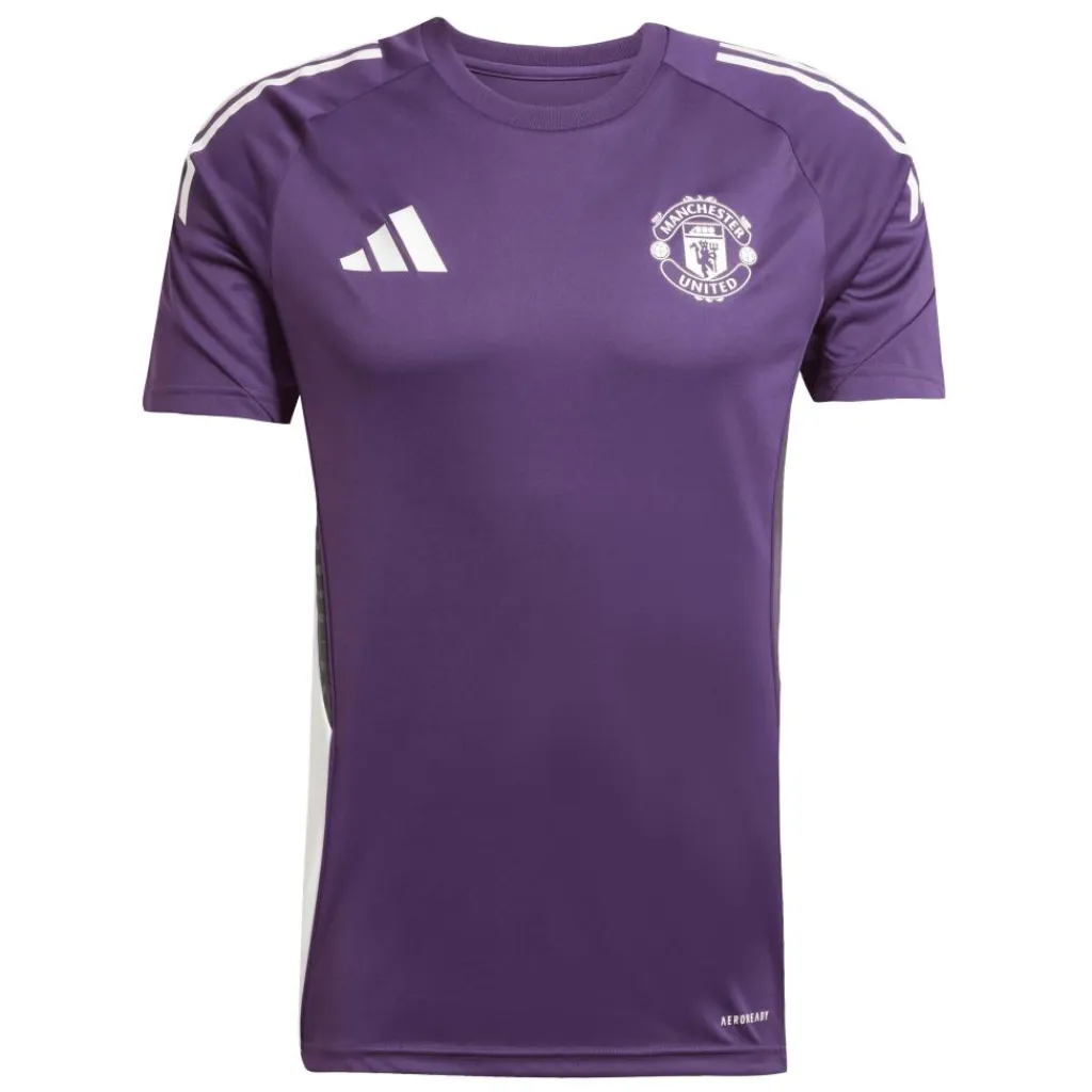 Dit adidas Manchester United Tiro 25 voetbalshirt is geïnspireerd op de kleuren van het uittenue. Spelers dragen dit shirt tijdens de voorbereiding op een wedstrijd. Het is gemaakt van zacht interlock materiaal, dat behandeld is met de AEROREADY technologie waardoor het shirt een vochtregulerende eigenschap heeft en een hoog draagcomfort biedt. Hierdoor is het shirt perfect om in te trainen.