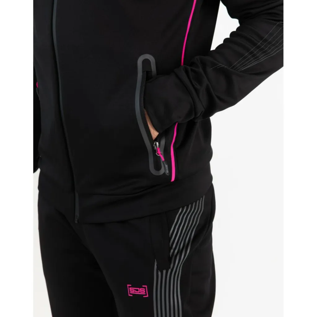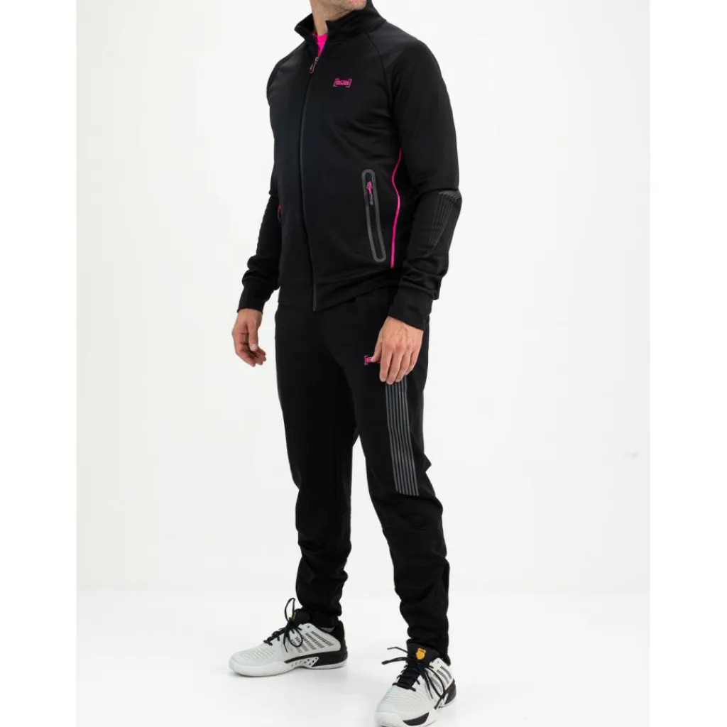 Het Sjeng Sports Oran trainingsjack voor heren heeft een moderne look met opvallende kleur accenten voor een extra dosis sportieve flair. Het trainingsjack heeft twee ritszakken en een hoge kraag voor extra warmte.
