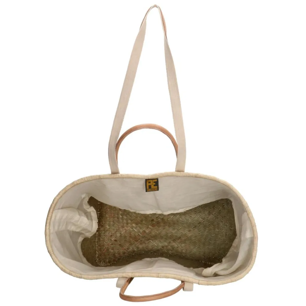 De PE Florence Penjy rieten strandtas is afsluitbaar met de trekkoordsluiting in het hoofdvak. De tas biedt genoeg ruimte voor een badhanddoek en een goed boek.