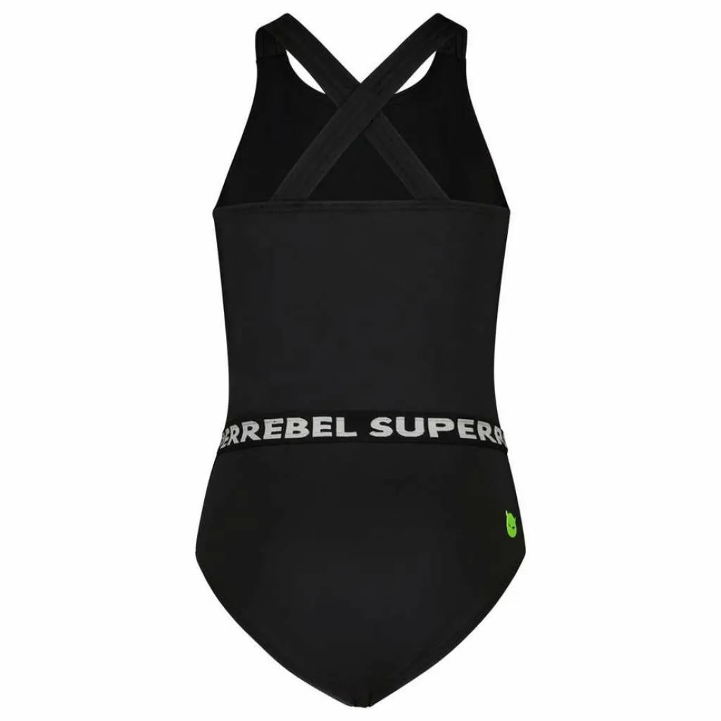 Dit SuperRebel Pisa badpak voor junioren in de kleur black is voorzien van gekruiste banden op de rug. Het badpak is afgewerkt met SuperRebel details voor een eigentijdse look en is deels gemaakt van gerecyclede materialen.
