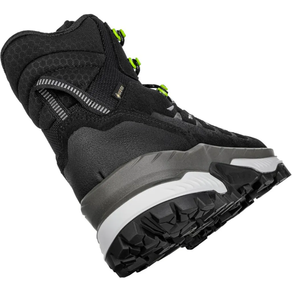 De Lowa Randir GTX Mid bergschoenen voor heren hebben een grof profiel die gemaakt is van Lowa VIBRAM CORNERSTONE die voor een stevige grip zorgen. Het GORE-TEX membraan zorgt gegarandeerd voor een water- en winddichte schoen, zodat op elke avontuur uw voeten droog blijven. Met de 2 zone lacing vetersluiting, kan er een aansluitende en comfortabele pasvorm gecreëerd worden. Verder zorgen de naden in de overlappingen voor zo min mogelijke wrijvingen en worden drukpunten verminderd. De bergschoenen zijn uitermate geschikt voor wandelingen, want het bovenwerk biedt de perfecte combinatie van stevigheid en flexibiliteit aan de voeten.
