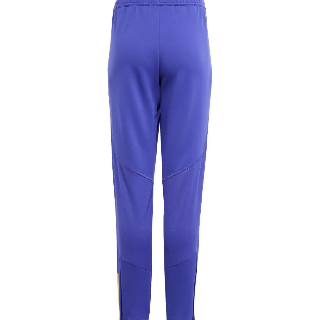 Deze adidas Real Madrid Tiro 23 trainingsbroek is perfect voor jonge fans van het team. De broek is gemaakt van hoogwaardige materialen die zacht aanvoelen op de huid, waardoor uw kind comfortabel kan sporten en spelen. Dankzij de elastische tailleband met trekkoord blijft de broek goed zitten tijdens het bewegen.