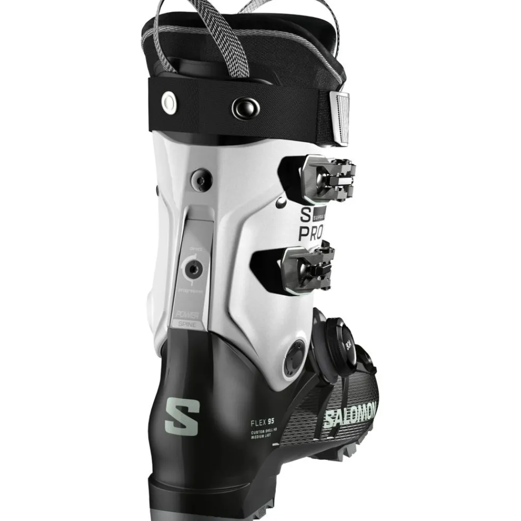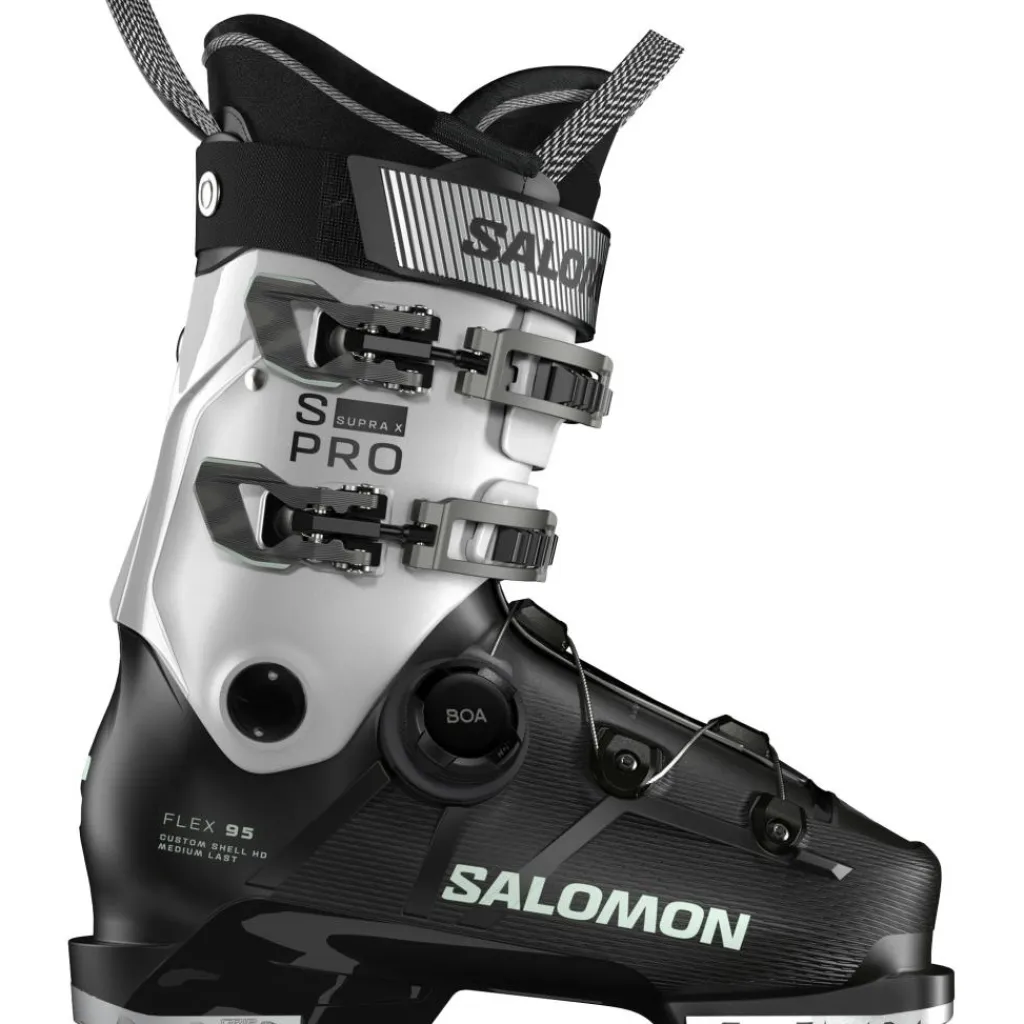 De S/Pro Supra BOA X95 skischoenen van Salomon hebben een traditionele constructie en is speciaal ontworpen voor de vrouwen. De skischoenen zorgen voor hoge prestaties en een aangename voetondersteuning. Daarnaast is door het BOA Fit-systeem de skischoenen makkelijk en snel aan en uit te trekken. De skischoenen zorgen voor een uitstekende controle tijdens het skiën.