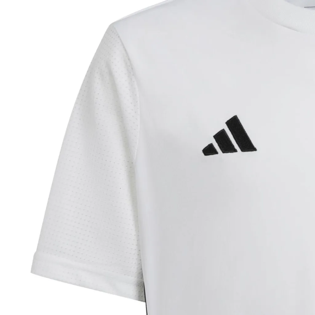 Het adidas Tabela voetbalshirt voor kinderen biedt voldoende bewegingsvrijheid dankzij het comfortabele materiaal en de normale pasvorm. Dit shirt is voorzien van kenmerkende adidas-accenten en is uitgerust met vochtabsorberende AEROREADY-technologie. Daarnaast hebben de korte mouwen een sneldrogende meshstructuur.