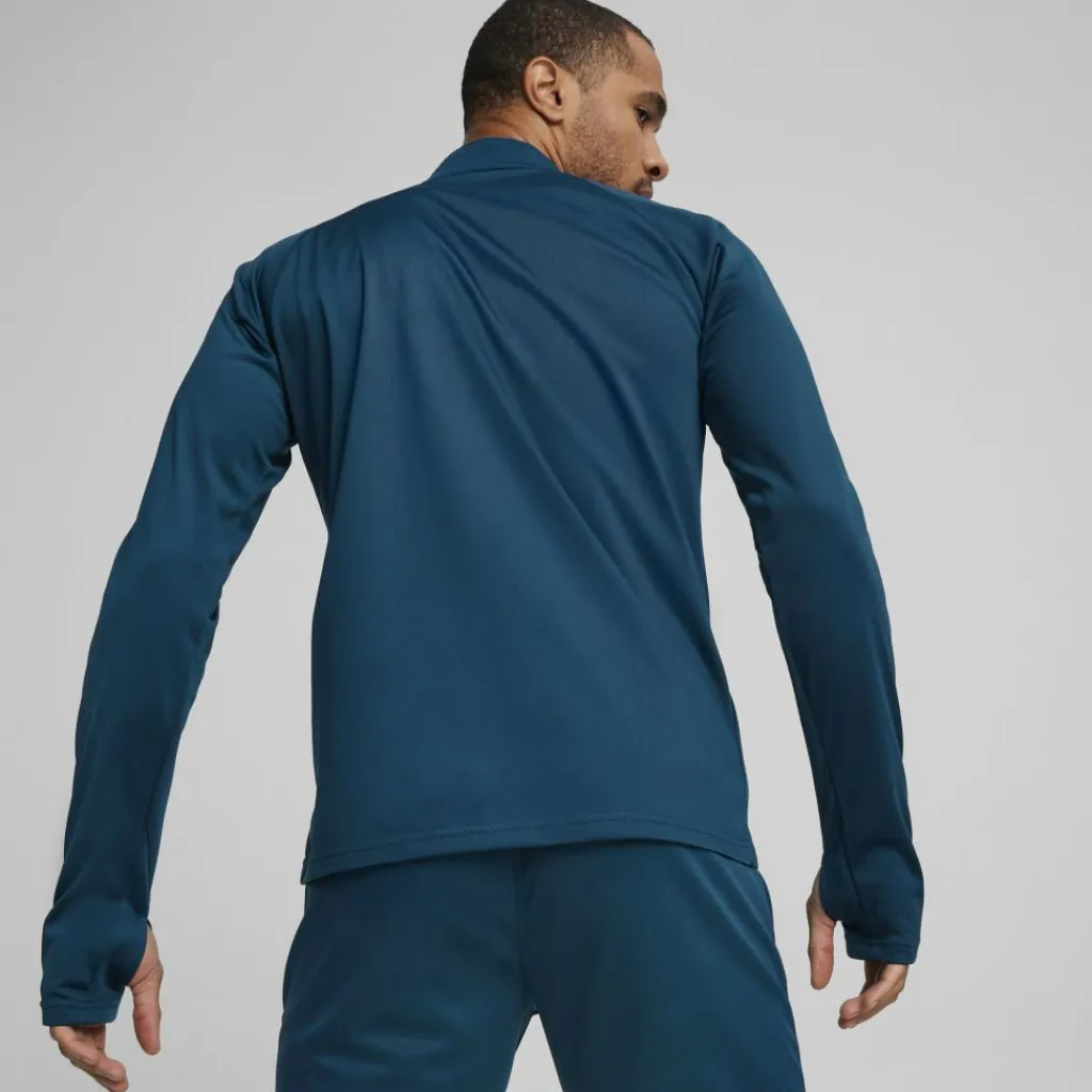 Het Puma TeamLIGA trainingsshirt voor heren heeft een aansluitende pasvorm die voor alle bewegingsvrijheid zorgt. Dit trainingsshirt is perfect om in te trainen, want deze houdt u aangenaam warm op frisse dagen. Met de rits kunt u eventueel het shirt meer laten ademen. Het materiaal is gemaakt met dryCELL-technologie, waardoor de stof sneldrogend is.