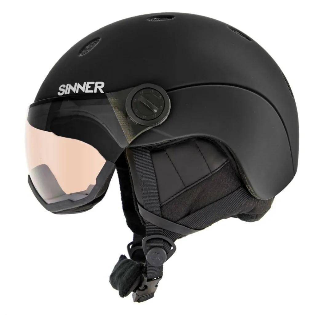 De SINNER TITAN VISOR skihelm is geschikt als u een bril met sterkte draagt. De vizierhelm is voorzien van een meekleurende spiegellens met 100% UV-bescherming en anti-fog behandeling. U kunt de rubberen hoesjes bij de voering verwijderen voor optimale ventilatie.