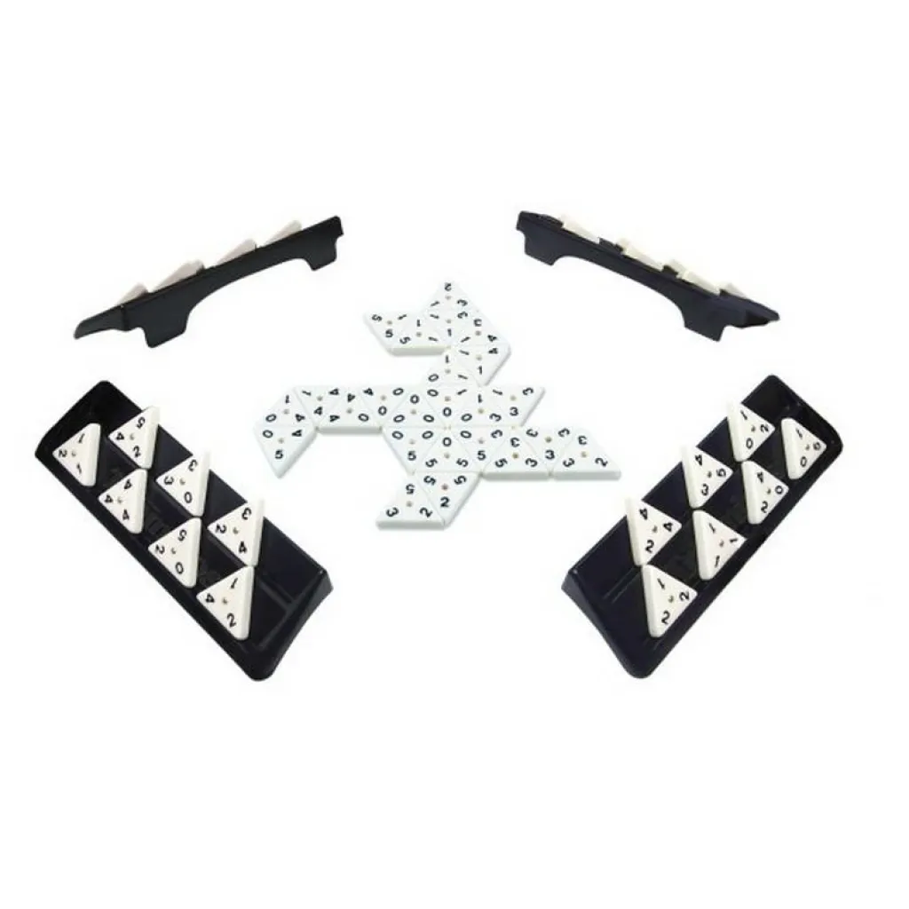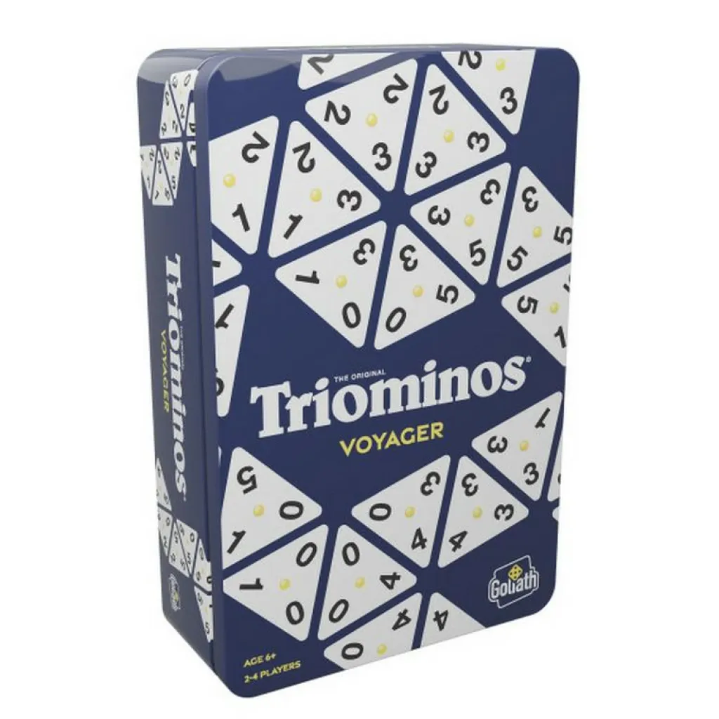 Dit Goliath Triominos Voyager strategiespel is een handige reisversie van het originele Triominos spel, ideaal om mee te nemen en te spelen op vakantie. In dit tactische spel probeert u met driehoekige, genummerde stenen zoveel mogelijk punten te scoren. Leg uw stenen slim aan alle kanten van de stenen die al op tafel liggen en vergroot zo uw kansen. Het spel begint met een willekeurige steen waarvan u direct de waarde scoort. Door bijzondere figuren te vormen kunt u extra punten verdienen. Het spel wordt gespeeld met 56 stenen en vier plankjes. Wie aan het einde de meeste punten heeft wint!